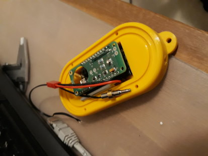 First prototype made from an Adafruit feather board and 3D printed shell.