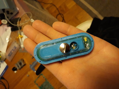 Third generation prototype made from partly 3D printed shell and cast resin body.