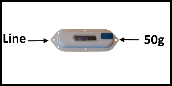 The Deepod works best when oriented vertically in the water. Add a weight as indicated on the picture to get the right balance.