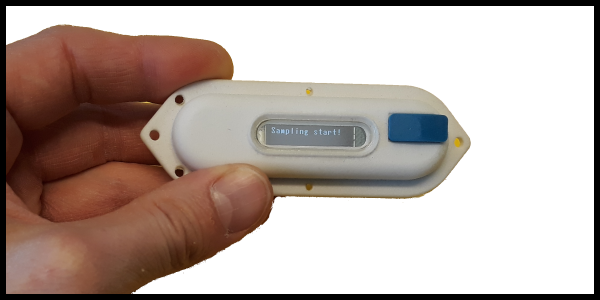 Holding the unit with the power switch in the up position gives an sampling interval of 30s (left in image).