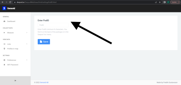 Enter the PodID and press SAVE. After 3 seconds the page will be redirected to the dash board.
