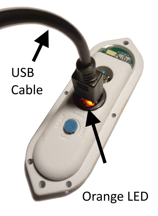 When the charger is connected, the orange LED next to the connector lights up. The Deepod is fully charged when the orange LED is off again.