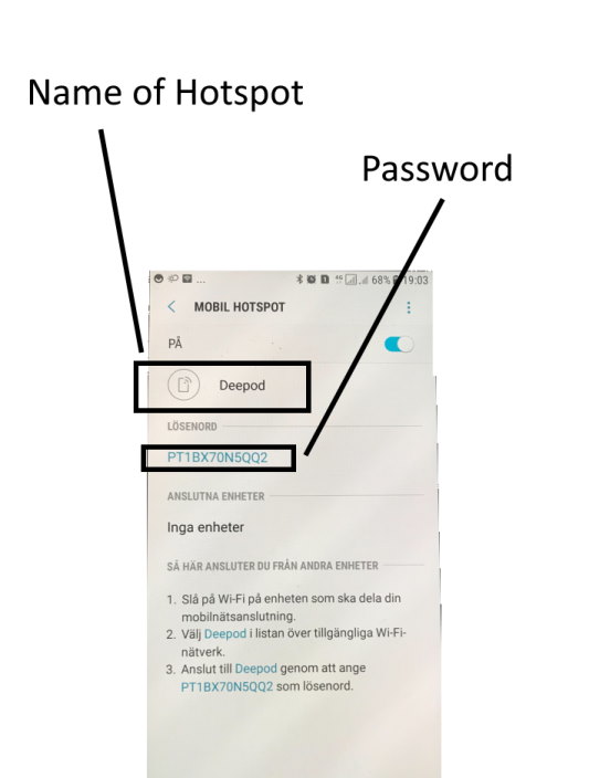 4. Change the password of the hotspot to your Pod ID (printed on your Deepod)